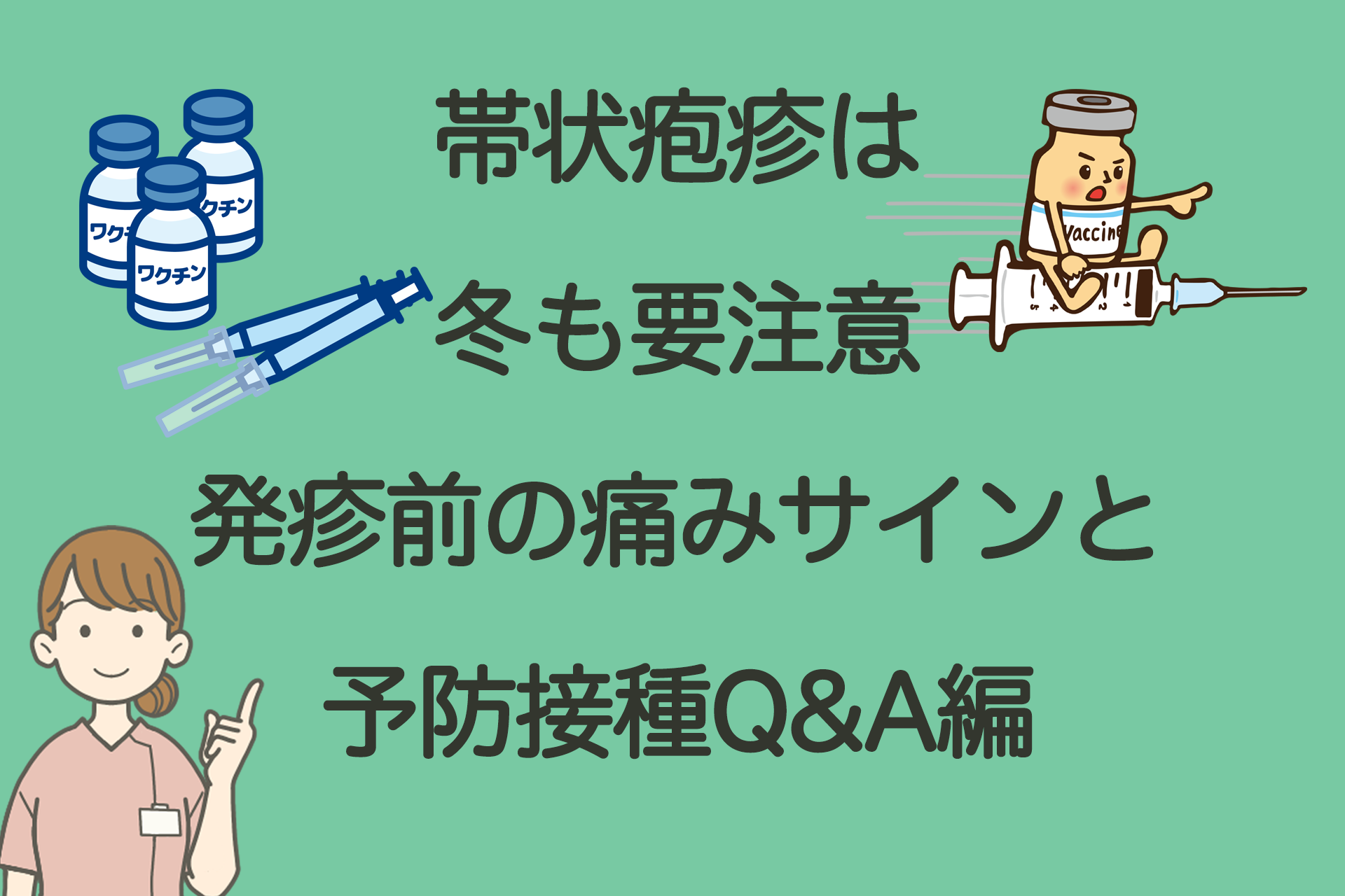 こんにちは! 稲岡内科小児科スタッフです。実は帯状疱疹は“夏の病気”ではありません。寒さ・乾燥・年末年始の疲れやストレスで冬にも発症が増えやすい疾患です。今回は「発疹が出る前のサイン」と「予防接種(ワクチン)」を中心に、受診の目安をシンプルにまとめました
